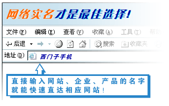 1、在浏览器地址栏中输入网络实名直达网站:输入网络实名(即单位、产品、商标、网站名称)便可直达网站,不需要输入“http://”、“www”、“.com”等复杂难记的域名、网址。